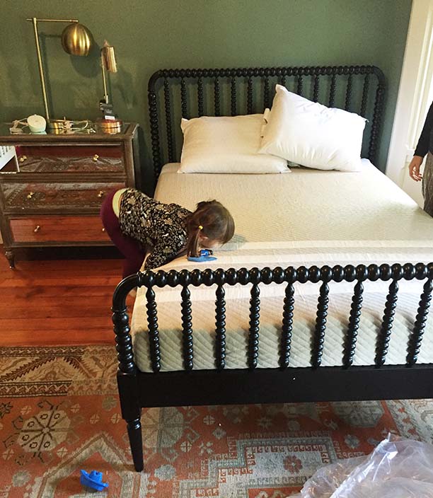 Next up we got Lucy's big-girl bed. Wegot an awesome Leesa mattress for the bed. It works out well because the new slatted bed doesn't require a box spring. We have a similar mattress on our master bed so we knew this would be super comfortable. Also love how easy it is to order and that it comes in a box (so much easier for going up and down stairs).